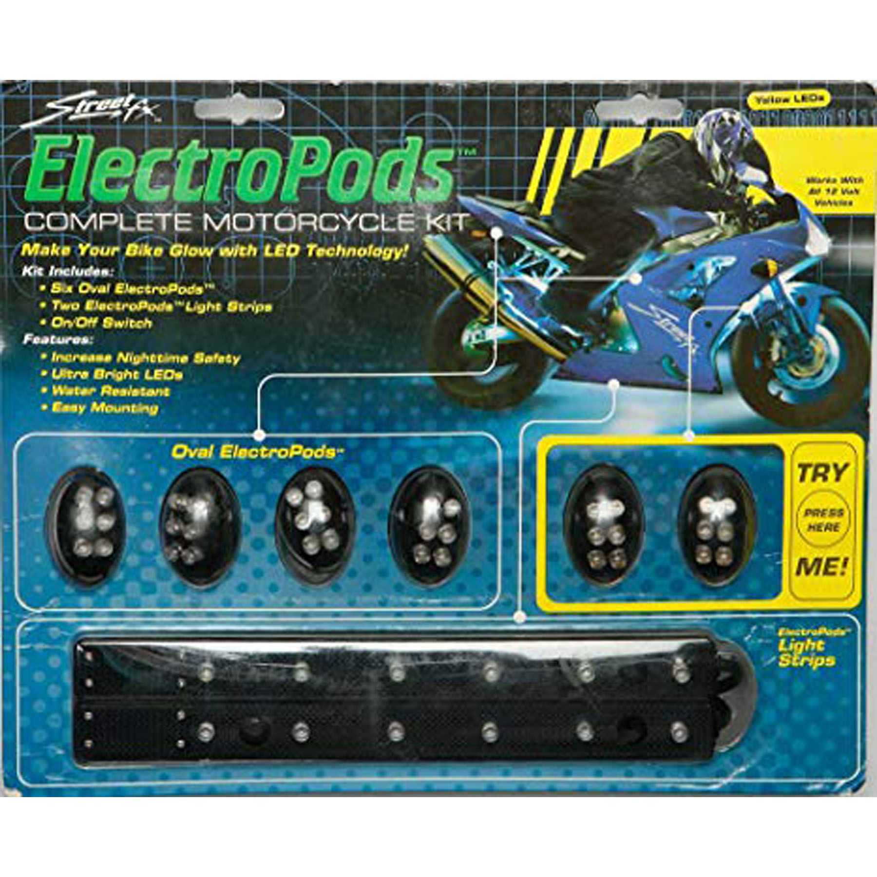 Kits include six oval shaped pods, two 8” ultra bright low profile LED strips. Water resistant on/off switch. Color Black, Yellow LEDs Brand:STREET FX