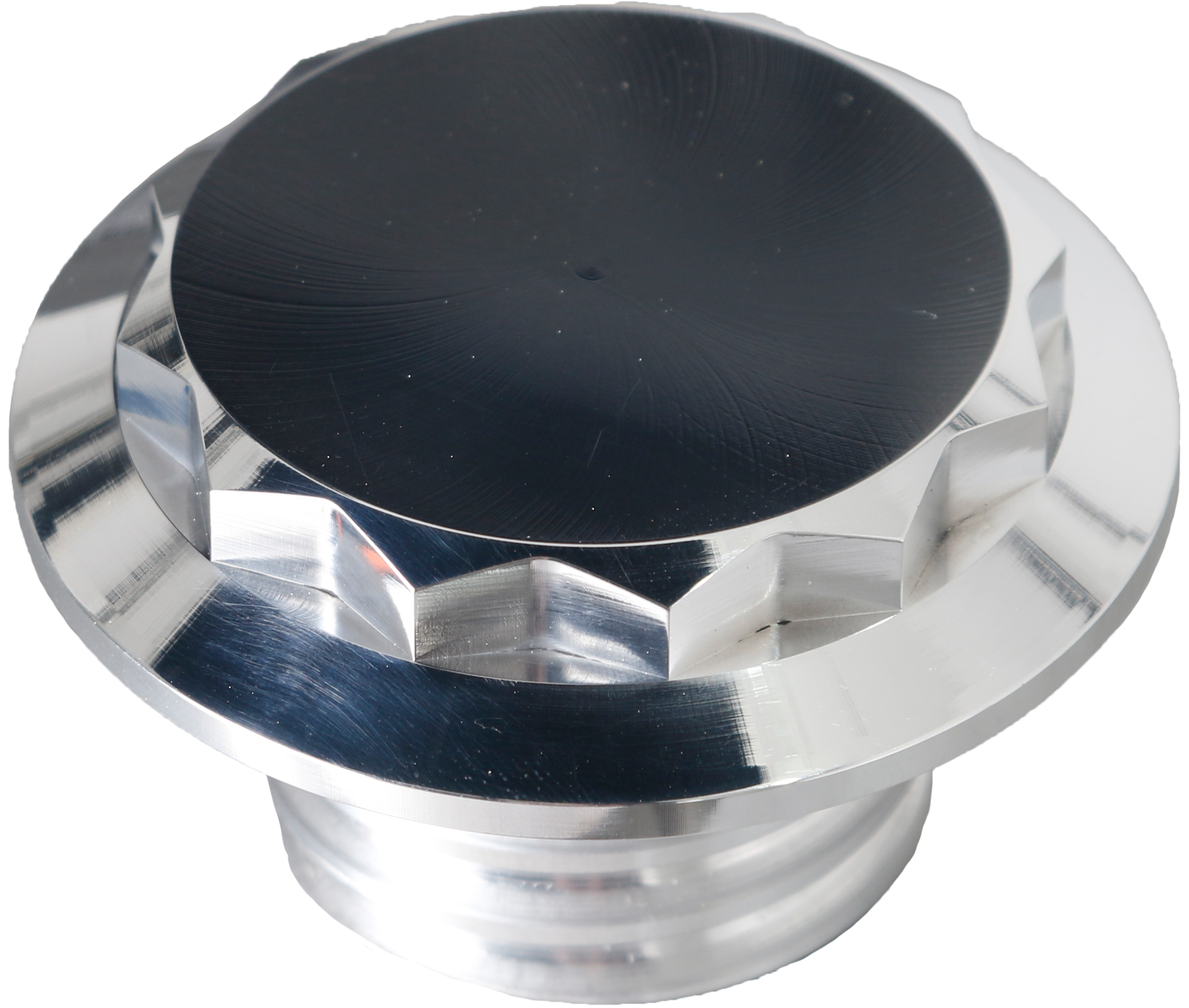 CNC machined from T6061 Billet Aluminum Unique custom 12-point design Available in vented (center cap) and non-vented (right side cap) Proudly Made in the USA