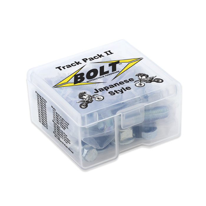 This extensively researched Track Pack contains hardware in factory style and finish. Includes sub-frame bolts, fork guard bolts, radiator shroud bolts, M5, M6 & M8 hex flange bolts, t-nuts, Fuji nuts, and more!