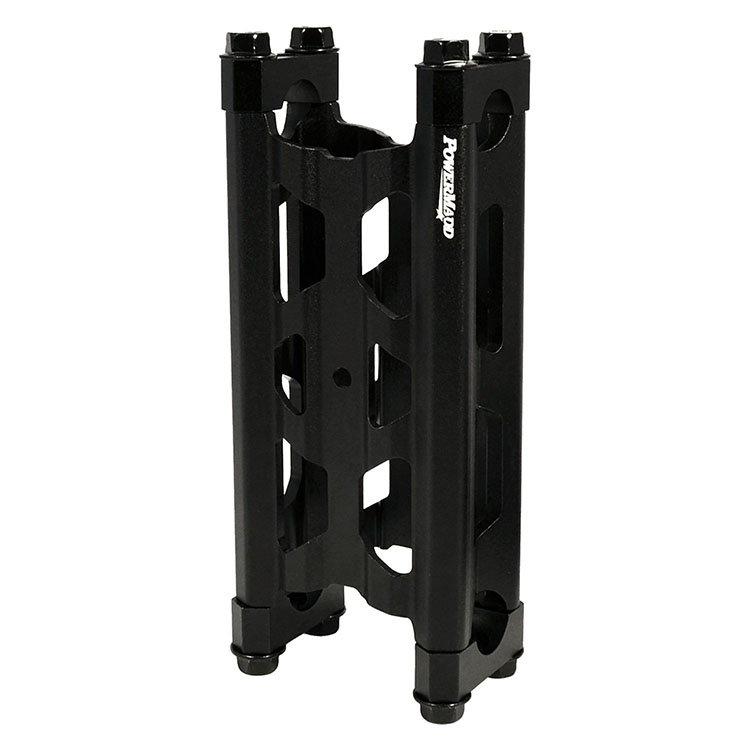 Universal Custom Narrow Pivot Riser (45760) by PowerMadd®. Height: 6″. With Bolts and Clamps. PowerMadd’s latest pivot risers use a modern design that is both durable and light weight. All mounting hardware is included (4 caps and 8 bolts) making it a direct OEM replacement. Designed with cut outs on the top and bottom to allow wires to be routed through the inside of the riser. Designed to fit any snowmobile with a (3-3.5″) wide T-style steering post. Includes 4 handlebar caps and 8 bolts. Extended throttle and brake lines may be required with taller risers. See PowerMadd riser fitment chart for details.