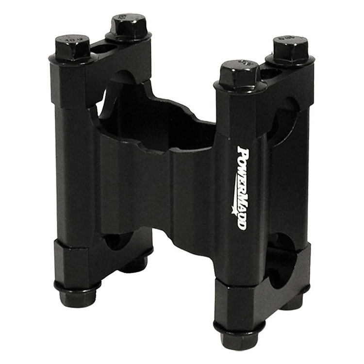 Universal Custom Narrow Pivot Riser (45720) by PowerMadd®. Height: 2″. With Bolts and Clamps. PowerMadd’s latest pivot risers use a modern design that is both durable and light weight. All mounting hardware is included (4 caps and 8 bolts) making it a direct OEM replacement. Designed with cut outs on the top and bottom to allow wires to be routed through the inside of the riser. Designed to fit any snowmobile with a (3-3.5″) wide T-style steering post. Includes 4 handlebar caps and 8 bolts. Extended throttle and brake lines may be required with taller risers. See PowerMadd riser fitment chart for details.