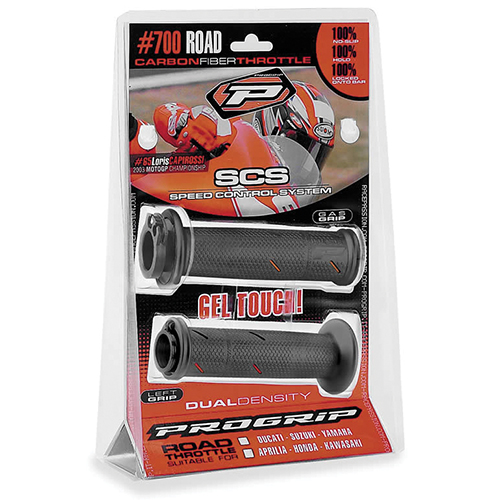 Carbon fiber compound throttle Gel touch dual density Steel lock-tight band requires no grip glue or safety wire Fits Aprilla, Honda, Kawasaki Brand:PROGRIP
