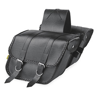 The Braided Series of bags convey a subtle elegance that has no equal. These bags are styled to give you just enough refinement to offset the rugged good looks of your bike. 3-strand braiding trims the rich black synthetic leather. Genuine roller-pin buckles and internal snap flaps add security. The Braided bags are internally reinforced with plastic to maintain their shape. All of the saddlebags install with either cable ties or laces, our sissy bar bag attaches easily with the supplied laces.