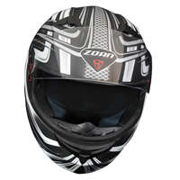 Blade SV Street Reborn Graphic Full Face Helmet (035-298) by ZOAN®. The Blade SVS is an uncompromising blend of quality helmet and stylish graphics; packed full of features like an inner sun shield, an audio system pocket and plenty of ventilation, making this helmet your number one choice for street bike riding.