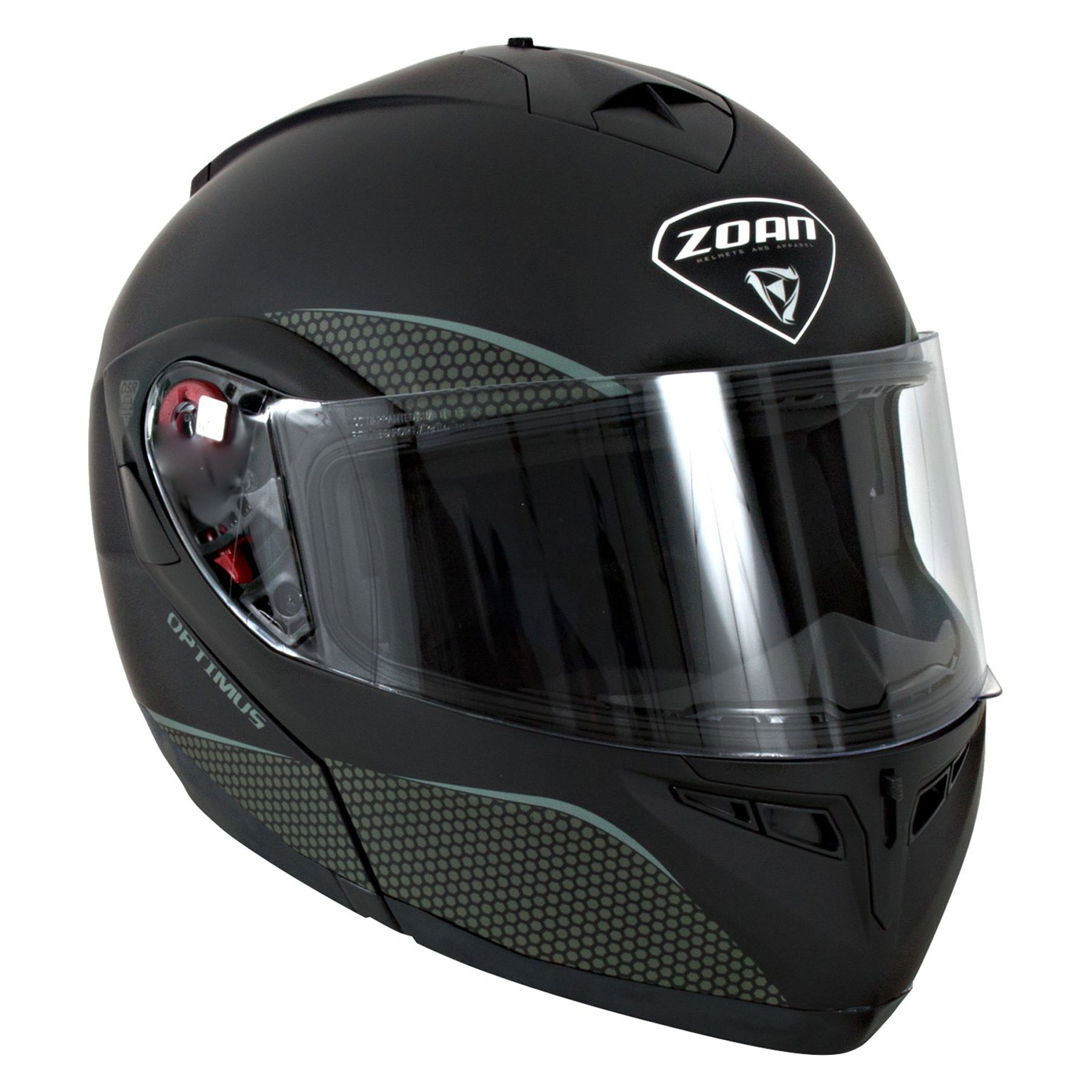 Optimus Solid Electric Snow Modular Helmet (038-527) by ZOAN®. The Zoan Optimus snow helmet features lightweight thermoplastic construction, plenty of ventilation for ultimate comfort and one button release to open the modular helmet. Optimus snow helmets come fitted with your choice of an Anti-Fog Double Lens Shield or an Electric Shield. Helmets are constructed using high quality materials such as polycarbonate and/or Fiber Glass mix with special cold weather and paint curing additives as well as UV protection to insure durability and the best in protection.