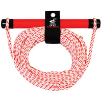 1 section ski rope has an aluminum floating handle and molded end caps for safety and comfort