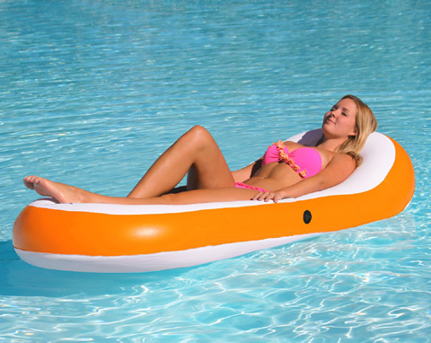 The comfort of AIRHEAD’s unique chaise will blow you away! For pools, lakes, at the beach or poolside, you’ll love the head and neck comfort it provides as you spread out in the sun. The full length mesh keeps you cool and flexes for extra comfort. Keep a cool drink at your side in the molded drink holder. 76 x 35 in. (deflated). Available in 3 designer colors: Aqua, Lime or Tangerine.