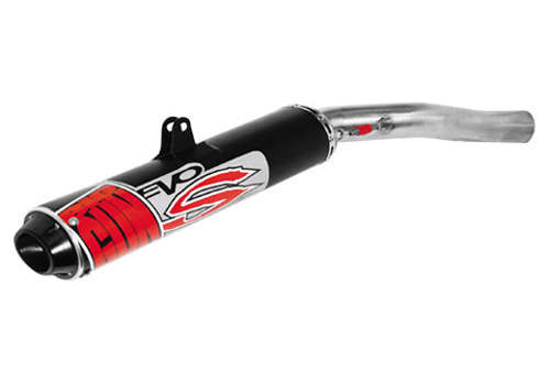 The muffler is coated black and wrapped in our high temp EVO S decal then coupled with our aggressive black end tip to give it that signature Big Gun look