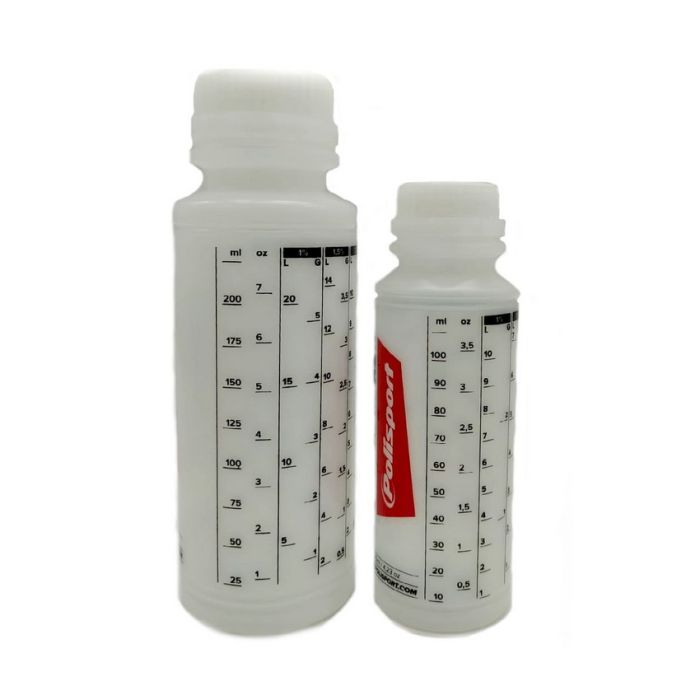 Prepare your oil/fuel mix with the help of Polisport Oil Mixer Bottle. It comes with a scale to help you prepare the mix. The mixer is available in two different capacities: 250 ml / 8.5 oz and 125 ml / 4.22 oz.