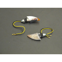Turnsignal set Shark, LED, E-mark (2 Pieces) Short stem, Chrome