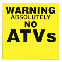 Warning Absolutely No ATVs .050 Reflective Plastic sign Brand:VOSS SIGNS