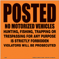 Posted No Motorized Vehicles .050 Reflective Plastic Sign
