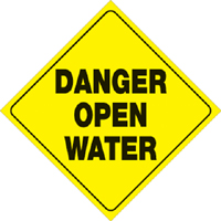 YELLOW PLASTIC REFLECTIVE SIGN 12″ – DANGER OPEN WATER