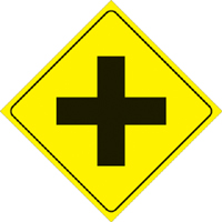 YELLOW PLASTIC REFLECTIVE SIGN 12″ – 4-WAY INTERSECTION