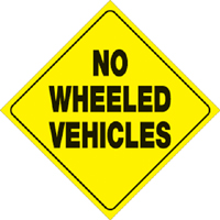 YELLOW PLASTIC REFLECTIVE SIGN 12″ – NO WHEELED VEHICLES