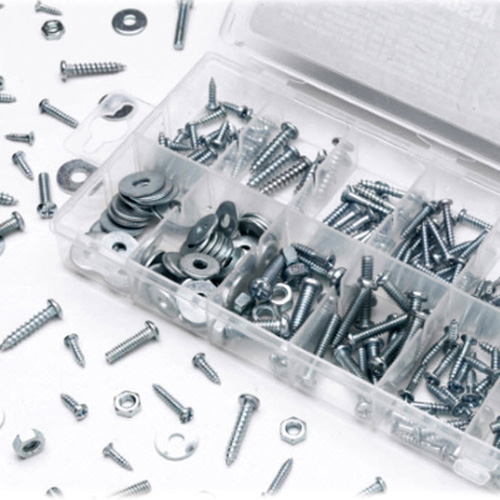 Contains 13 popular sizes of wood, sheet metal, machine screws, nuts and washers