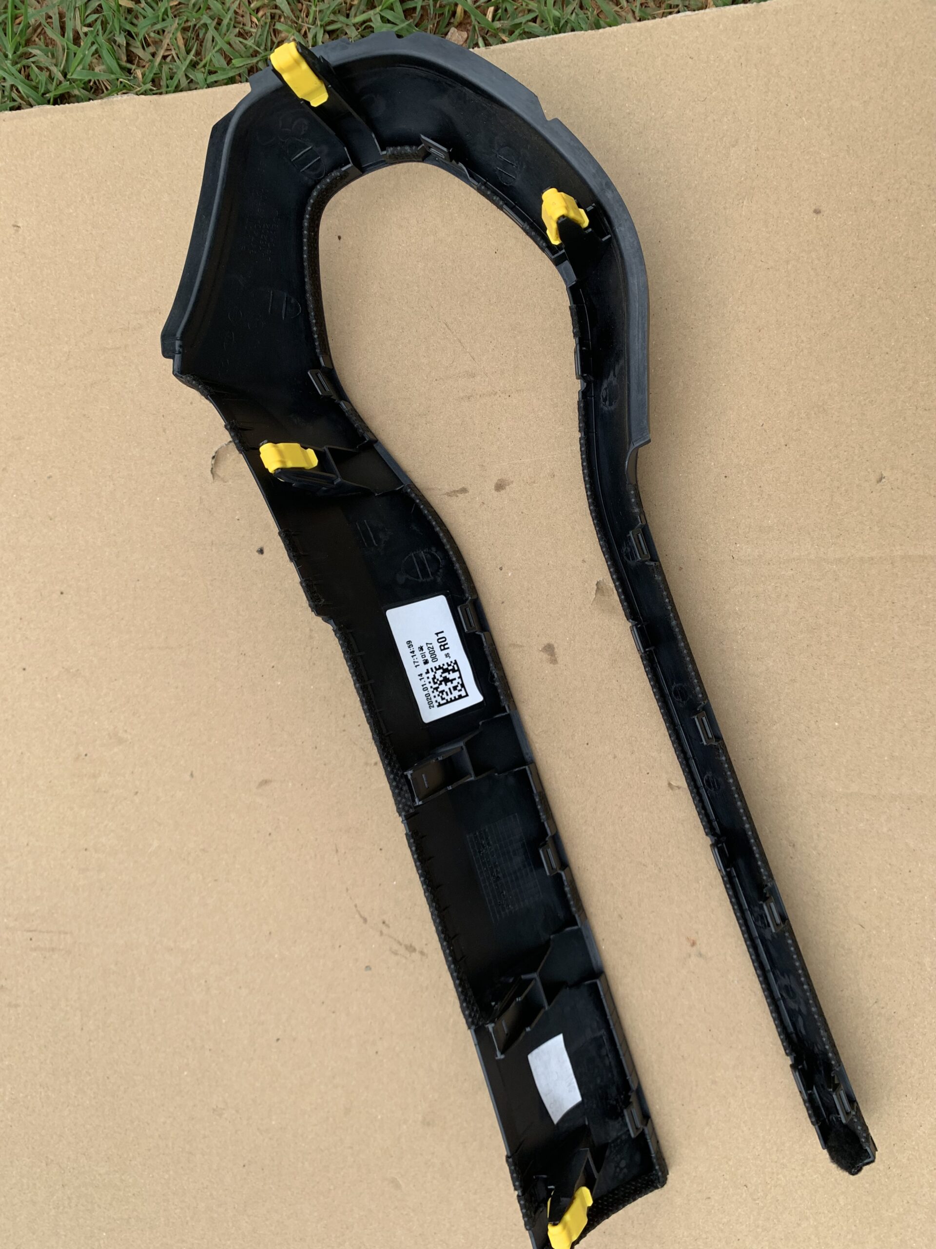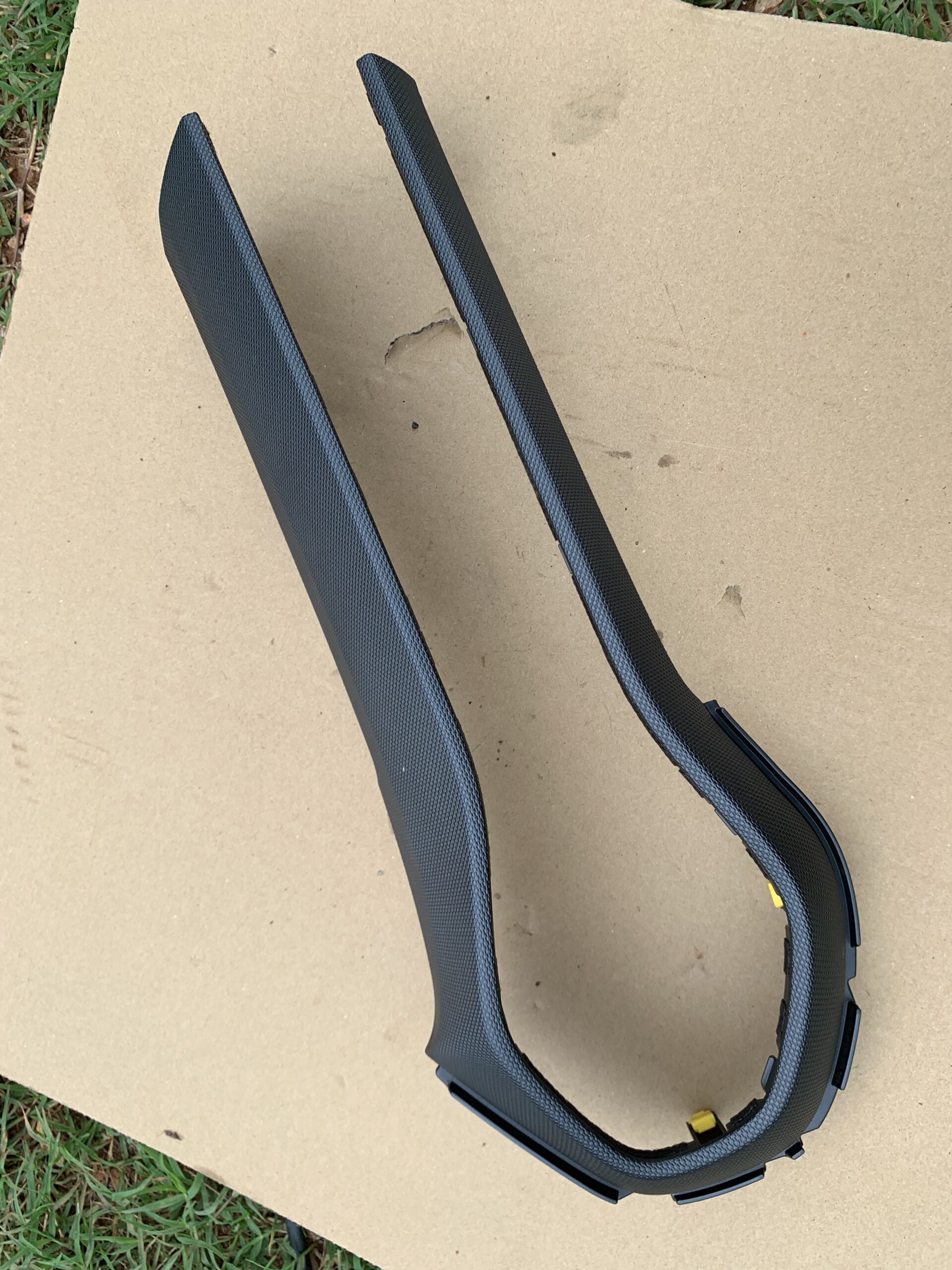 OEM center control/keyboard bezel with yellow accent trim. Inspect finish, color, and mounting tabs in the photos.