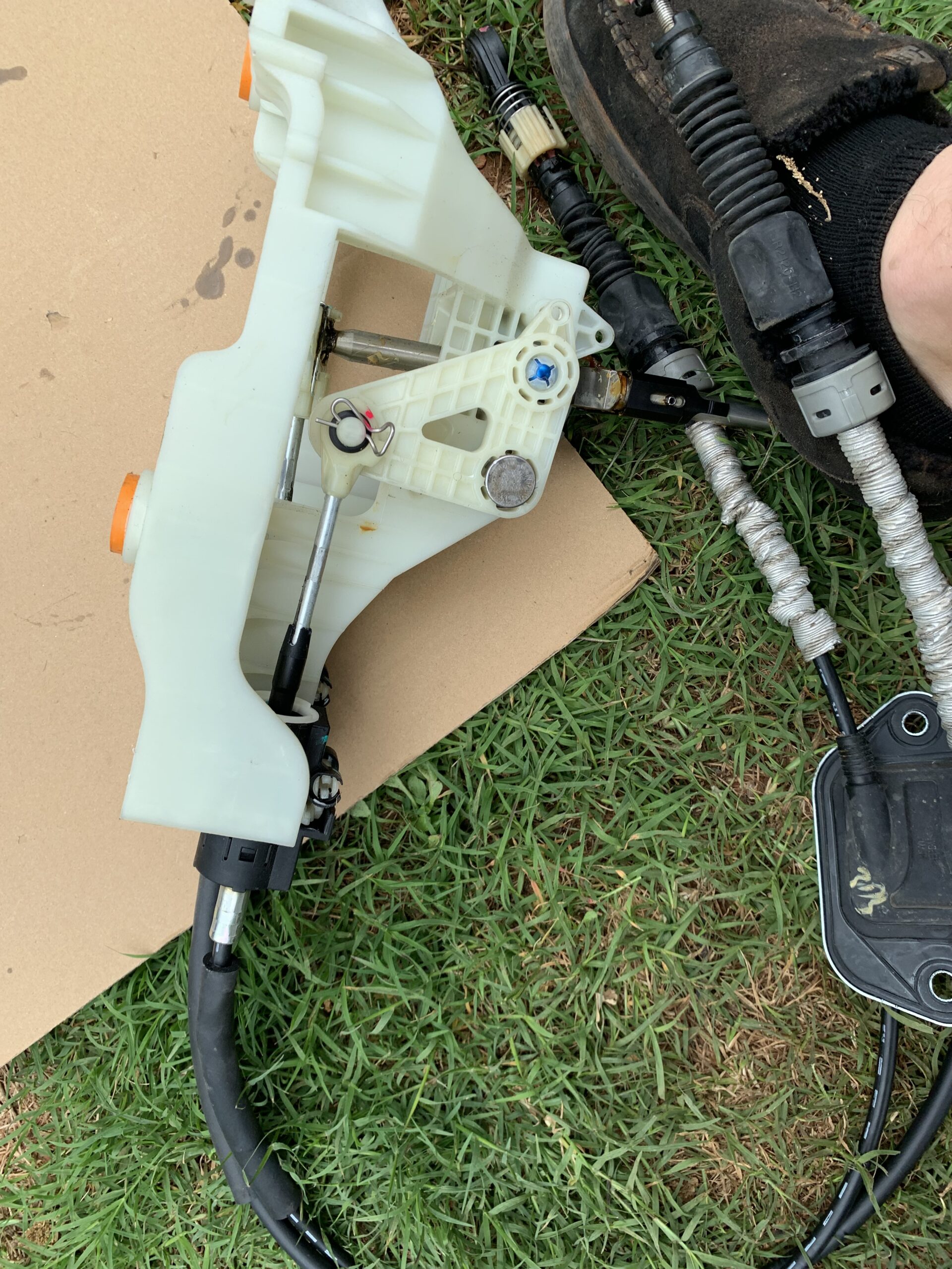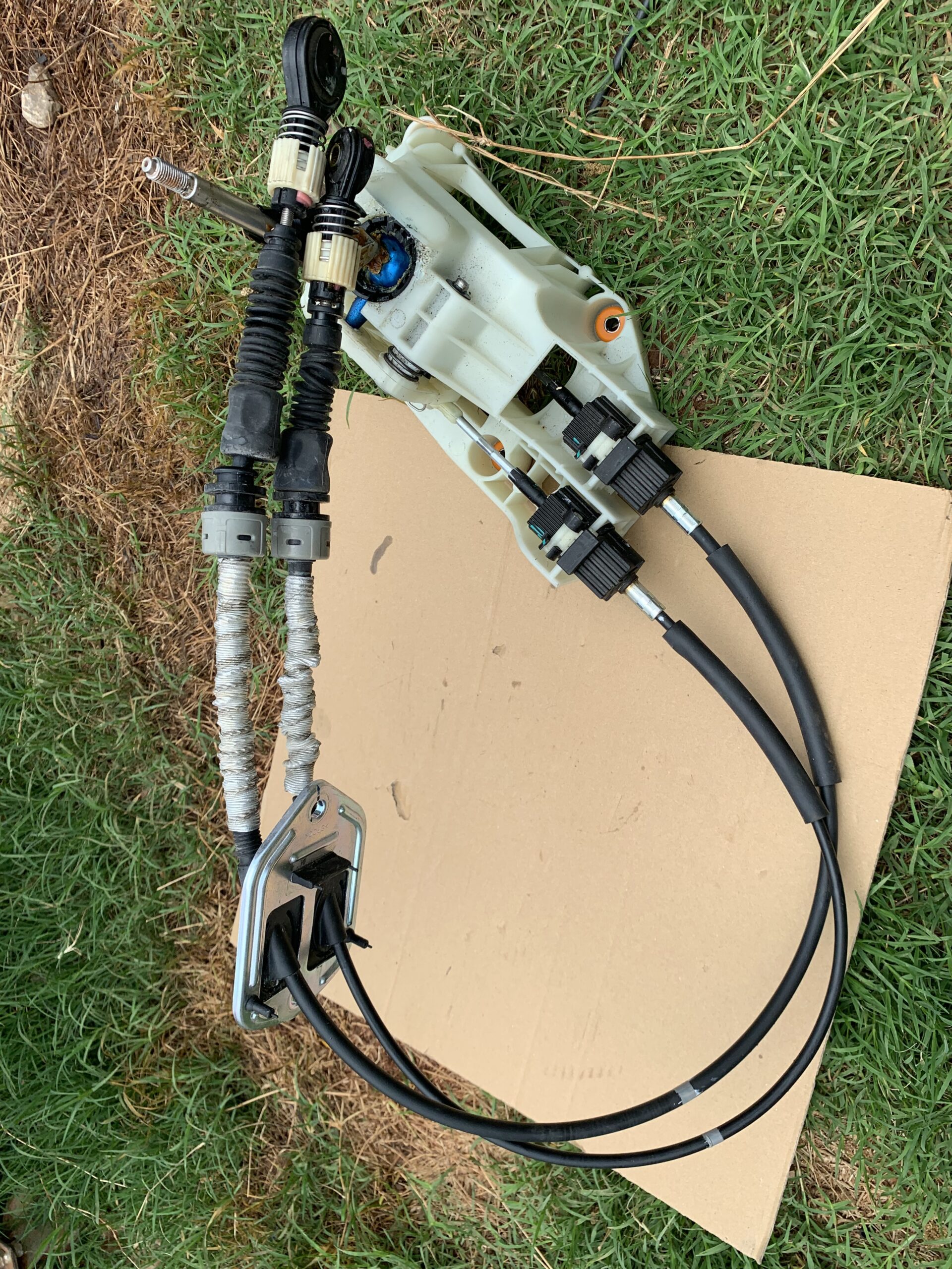 OEM manual shifter assembly with shift cables. Inspect bushings, cable ends, and the shifter mechanism in the photos.
