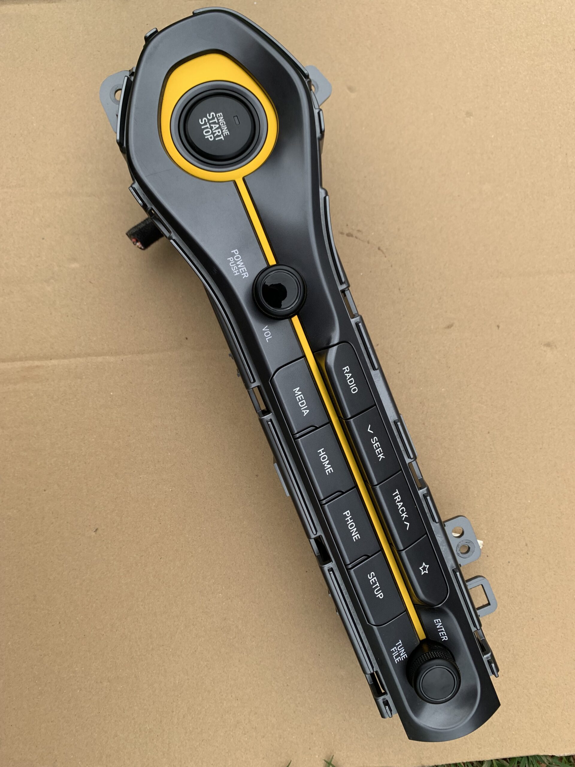 OEM center control panel with push-button start and surrounding switch functions. Inspect finish, button icons, and connectors in the photos.