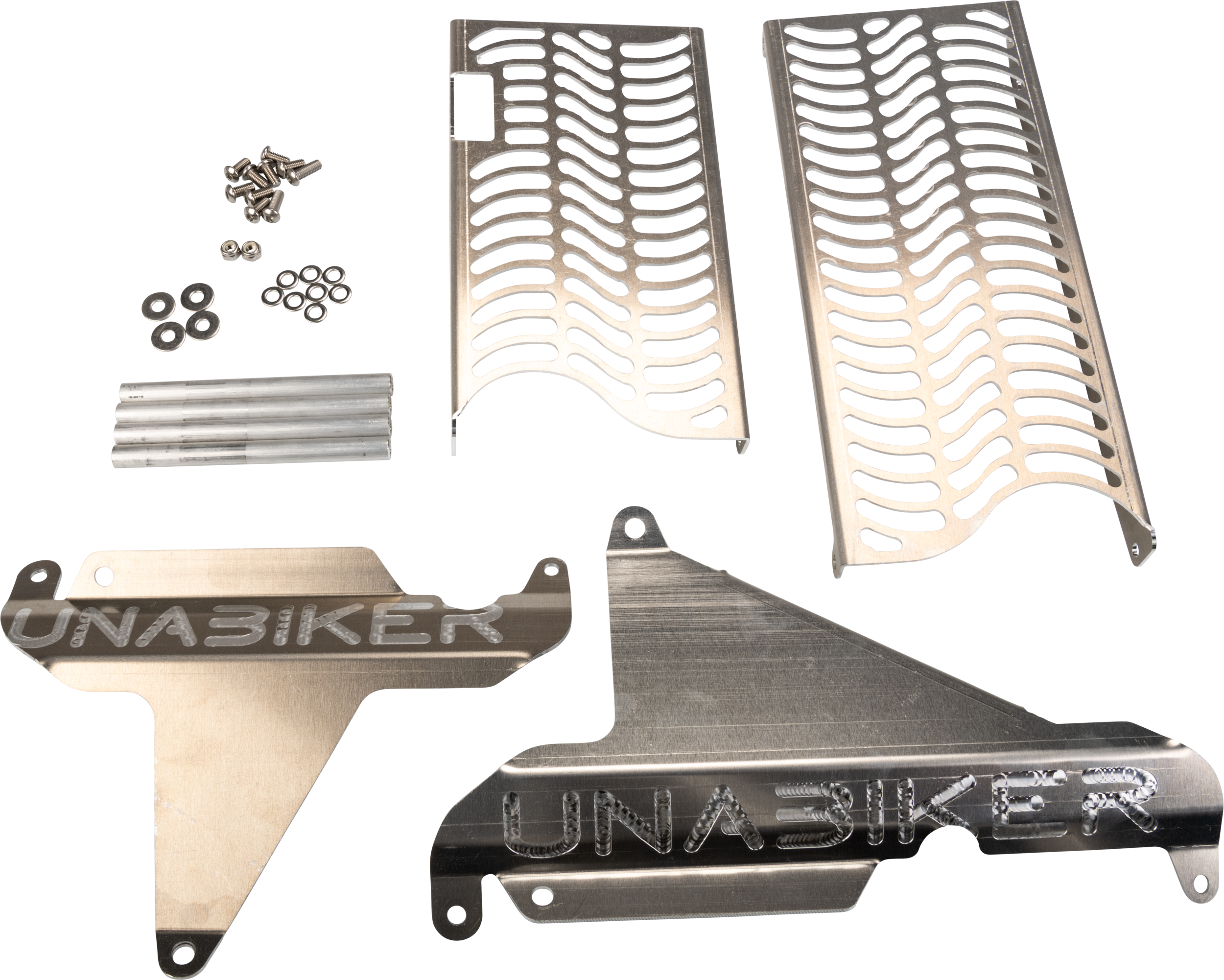 Made from beefy 6061 T-4 aluminum Front guard has specially designed curved slots to increase air flow and add strength Spaced forward of the face of radiator to help prevent mud build up Specially formed side panels to reduce fold back in an accident Front and side bolt together to direct more air through the radiator for improved flow Generous size give great protection from roost, rocks, twigs and debris Anodized COLORS with all stainless steel hardware Used by many pros and teams