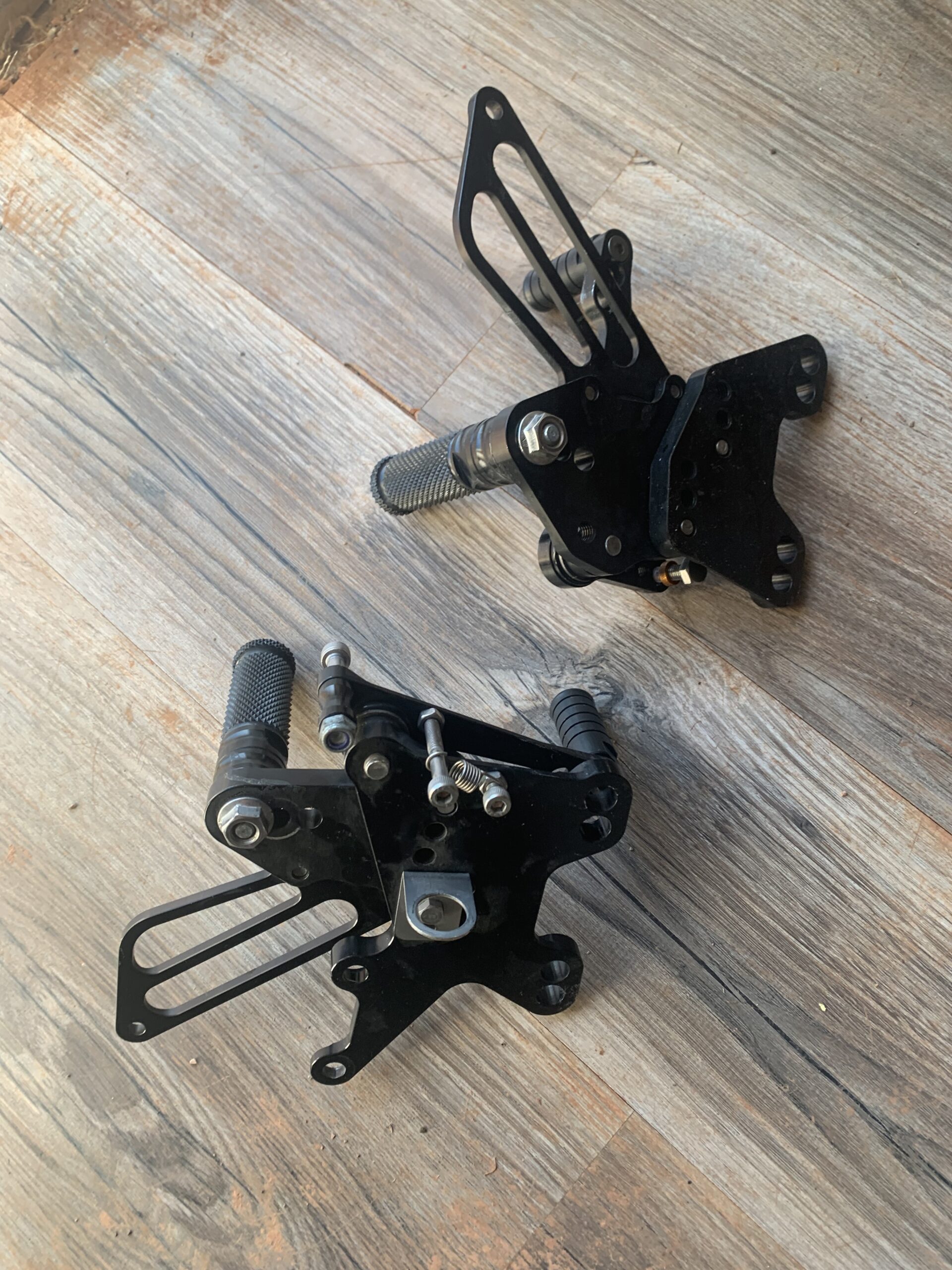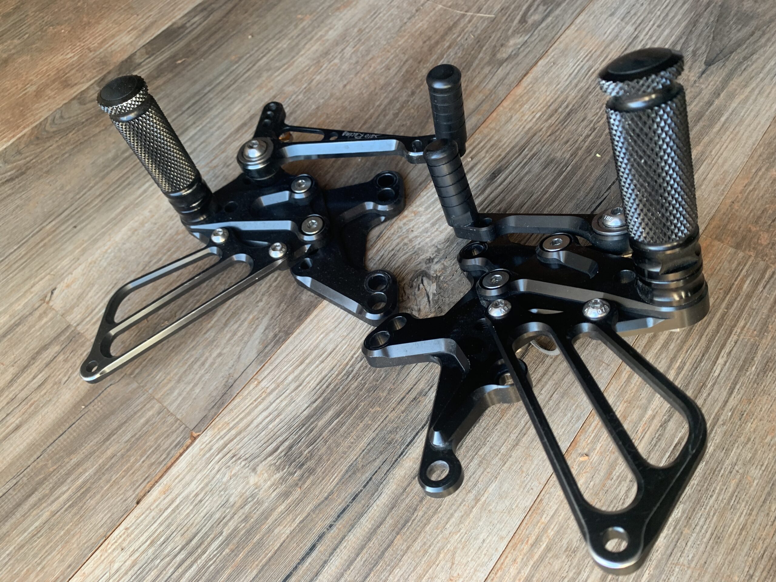 SATO RACING Rear SetsĀ for 2021-2023 Kawasaki ZX-10R and ZX-10RR features components precision machined out of high strength anodized billet aluminum, with stainless steel bolts. These adjustable Rear Sets feature a modular step plate design for a wide range of positions.