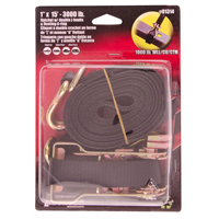 1″ x 15′ ratchet strap with double j-hooks and floating D-ring 3,000 lb. maximum load capacity (1,000 lb. working load limit) Black Sold each Display packaged Brand:ERICKSON