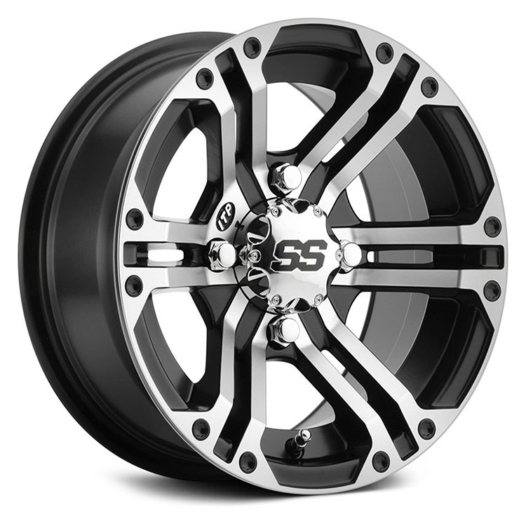 SS212 Rear ATV/UTV Machined/Black Accents Alloy Aluminum Wheel (1422232404B) by ITP®. Wheels Size: 14″ x 6″. Bolt Pattern: 4 x 137mm. Offset: 4+2. The next generation in SS Alloy style and performance. Strong, light and distinctively different. Built using ITP’s exclusive Advancecast process to exacting QS 9000 quality specifications. Heavy-duty 14 in. Side-by-Side UTV applications rated at 800 lbs. Strong, lightweight and a striking appearance make this one-piece aluminum wheel a great choice for ATVs and UTVs.