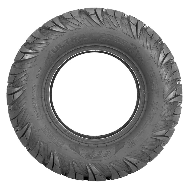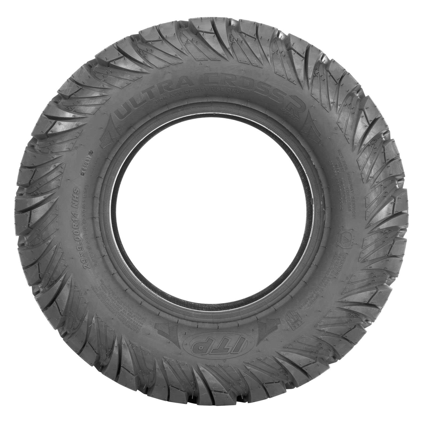 Universal UltraCross R Spec Radial Front Tire (6P0317) by ITP®. Rim Diameter: 14″. The Ultra Cross R Spec has proven itself as the radial tire of choice for extreme desert riding. The non-directional tread design enhances traction and control on smooth and slippery surfaces while the super deep rim guard offers the best wheel/lip protection in the business.