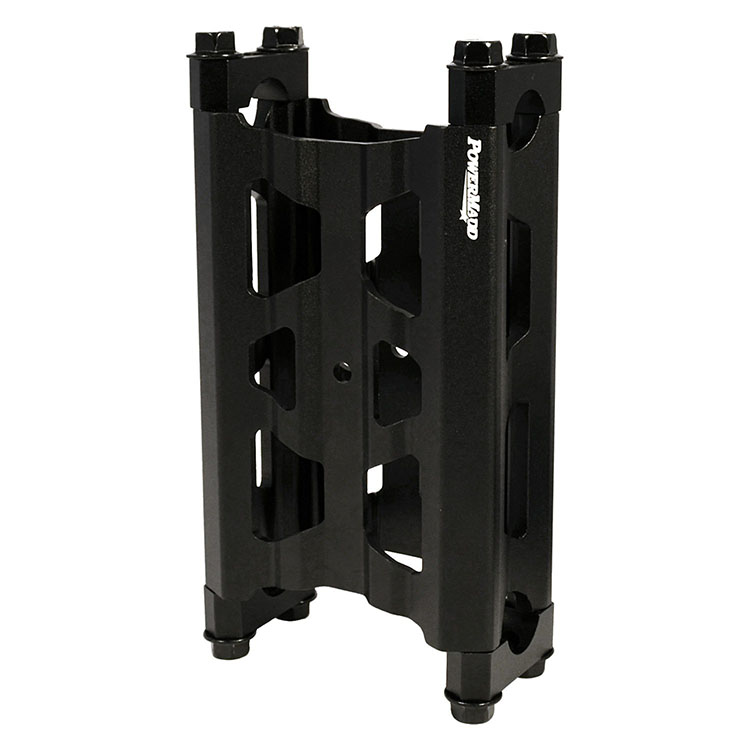 Universal Custom Wide Pivot Riser (45860) by PowerMadd®. Height: 6″. With Bolts and Clamps. PowerMadd’s latest pivot risers use a modern design that is both durable and light weight. All mounting hardware is included (4 caps and 8 bolts) making it a direct OEM replacement. Designed with cut outs on the top and bottom to allow wires to be routed through the inside of the riser. Designed to fit any snowmobile with a (4-4.5″) wide T-style steering post. Includes 4 handlebar caps and 8 bolts. Extended throttle and brake lines might be required with taller risers. See PowerMadd riser fitment chart for details.