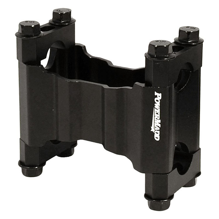 Universal Custom Wide Pivot Riser (45820) by PowerMadd®. Height: 2″. With Bolts and Clamps. PowerMadd’s latest pivot risers use a modern design that is both durable and light weight. All mounting hardware is included (4 caps and 8 bolts) making it a direct OEM replacement. Designed with cut outs on the top and bottom to allow wires to be routed through the inside of the riser. Designed to fit any snowmobile with a (4-4.5″) wide T-style steering post. Includes 4 handlebar caps and 8 bolts. Extended throttle and brake lines might be required with taller risers. See PowerMadd riser fitment chart for details.