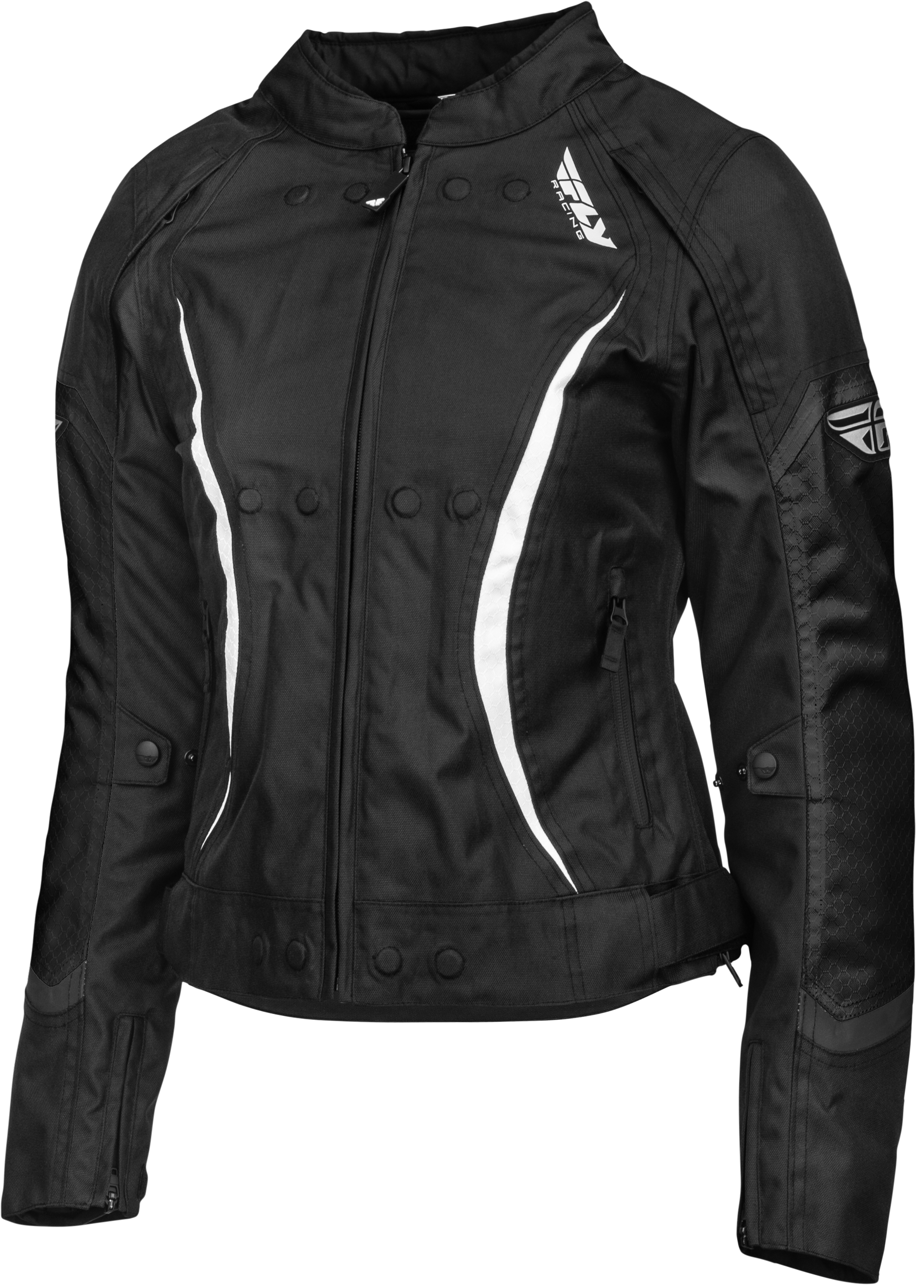 Hydraguard – Weatherproof technology Windproof, waterproof, breathable High-visibility reflective panels and logos for added safety Air Induction System features large 3D mesh intake vent CE Level 1 removable shoulder/elbow armor – conforms to EN 1621-1 standard Removable PE back pad – Upgradable to FLY Barricade CE armor Removable thermal liner 8” attachment zipper connects to pant Arm volume adjusters secure armor and provide optimum fit Belt loop attachment Hook and Loop waist adjusters for customized fit Micro fleece collar Side expansion panel for added comfort YKK® main zipper Zipper pulls for ease of use with gloves Zippered cuff with hook and loop adjustment Drop tail for added coverage Anatomically fitted for ideal riding position